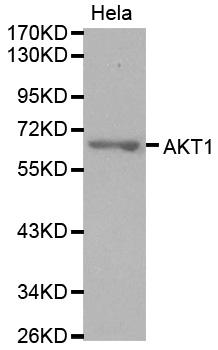 The serine-threonine protein kinase encoded by the AKT1 gene is catalytically inactive in serum-starved primary and immortalized fibroblasts. AKT1 and the related AKT2 are activated by platelet-derived growth factor. The activation is rapid and specific, and it is abrogated by mutations in the pleckstrin homology domain of AKT1. It was shown that the activation occurs through phosphatidylinositol 3-kinase. In the developing nervous system AKT is a critical mediator of growth factor-induced neuronal survival. Survival factors can suppress apoptosis in a transcription-independent manner by activating the serine/threonine kinase AKT1, which then phosphorylates and inactivates components of the apoptotic machinery. Mutations in this gene have been associated with the Proteus syndrome. Multiple alternatively spliced transcript variants have been found for this gene.