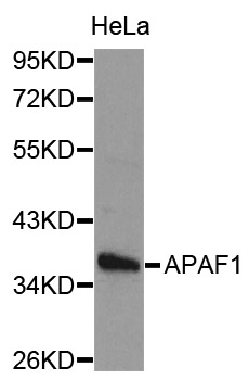 This gene encodes a cytoplasmic protein that initiates apoptosis. This protein contains several copies of the WD-40 domain, a caspase recruitment domain (CARD), and an ATPase domain (NB-ARC). Upon binding cytochrome c and dATP, this protein forms an oligomeric apoptosome. The apoptosome binds and cleaves caspase 9 preproprotein, releasing its mature, activated form. Activated caspase 9 stimulates the subsequent caspase cascade that commits the cell to apoptosis. Alternative splicing results in several transcript variants encoding different isoforms.
