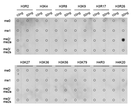 | Immunogen | A synthetic methylated peptide corresponding to residues surrounding Arg26 of human histone H3 |