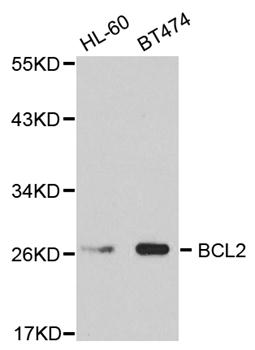 Western blot analysis of extracts of various cell lines using BCL2 antibody.