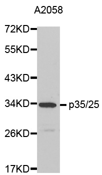 Cyclin-dependent kinases (CDKs) are serine/threonine kinases that are activated by cyclins and govern eukaryotic cell cycle progression. While CDK5 shares high sequence homology with its family members, it is thought mainly to function in postmitotic neurons, regulating the cytoarchitecture of these cells. Analogous to cyclins, p35 and p39 associate with and activate CDK5 despite the lack of sequence homology. CDK5 is ubiquitously expressed, but high levels of kinase activity are detected primarily in the nervous system due to the narrow expression pattern of p35 and p39 in post-mitotic neurons. A large number of CDK5 substrates have been identified although no discrete substrates have been attributed as a function of p35 vs. p39. Amongst many, substrates of CDK5 include p35 and p39. p35 is rapidly degraded (T1/2 <20 min) by the ubiquitin-proteasome pathway (1). However, p35 stability increases as CDK5 kinase activity decreases, and this is likely a result of decreased phosphorylation of p35 at Thr138 by CDK5 (2). NGF activates Erk and EGR1, and induces p35 expression in PC12 cells (3). Proteolytic cleavage of p35 by calpain produces p25 upon neurotoxic insult, resulting in prolonged activation of CDK5 by p25. Accumulation of p25 is found in neurodegenerative diseases such as Alzheimer's disease and Amyotrophic Lateral Sclerosis (ALS) (4-5).