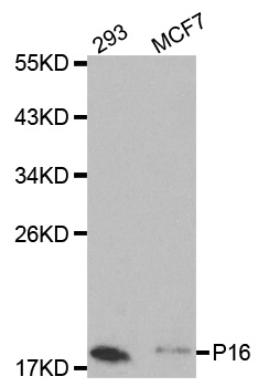 The division cycle of eukaryotic cells is regulated by a family of protein kinases known as the cyclin-dependent kinases (CDKs). The sequential activation of individual members of this family and their consequent phosphorylation of critical substrates promotes orderly progression through the cell cycle. It has been reported that CDKN2A binds to CDK4 and inhibits the catalytic activity of the CDK4/cyclin D enzymes. CDKN2A seems to act in a regulatory feedback circuit with CDK4, D-type cyclins and retinoblastoma protein (1). The INK4 (inhibitor of cyclin-dependent kinase 4) family consists of four tumor-suppressor proteins: p15(INK4B), CDKN2A(INK4A), p18(INK4C), and p19(INK4D). While their sequences and structures are highly homologous, they show appreciable differences in conformational flexibility, stability, and aggregation tendency (2). Cell cycle arrest at the G1 checkpoint allows completion of critical macromolecular events prior to S phase. Regulators of the G1 checkpoint include an inhibitor of cyclin-dependent kinase, CDKN2AINK4; two tumor-suppressor proteins, p53 and RB and cyclin D1. CDKN2AINK4 is a tumor-suppressor protein and that genetic and epigenetic abnormalities in genes controlling the G1 checkpoint can lead to both escape from senescence and cancer formation (3).