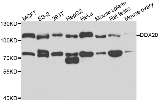 DEAD box proteins, characterized by the conserved motif Asp-Glu-Ala-Asp (DEAD), are putative RNA helicases. They are implicated in a number of cellular processes involving alteration of RNA secondary structure such as translation initiation, nuclear and mitochondrial splicing, and ribosome and spliceosome assembly. Based on their distribution patterns, some members of this family are believed to be involved in embryogenesis, spermatogenesis, and cellular growth and division. This gene encodes a DEAD box protein, which has an ATPase activity and is a component of the survival of motor neurons (SMN) complex. This protein interacts directly with SMN, the spinal muscular atrophy gene product, and may play a catalytic role in the function of the SMN complex on RNPs.