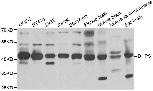This gene encodes a protein that is required for the formation of hypusine, a unique amino acid formed by the posttranslational modification of only one protein, eukaryotic translation initiation factor 5A. The encoded protein catalyzes the first step in hypusine formation by transferring the butylamine moiety of spermidine to a specific lysine residue of the eukaryotic translation initiation factor 5A precursor, forming an intermediate deoxyhypusine residue. Alternatively spliced transcript variants encoding multiple isoforms have been observed for this gene.
