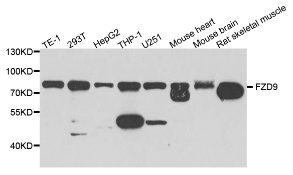 Members of the 'frizzled' gene family encode 7-transmembrane domain proteins that are receptors for Wnt signaling proteins. The FZD9 gene is located within the Williams syndrome common deletion region of chromosome 7, and heterozygous deletion of the FZD9 gene may contribute to the Williams syndrome phenotype. FZD9 is expressed predominantly in brain, testis, eye, skeletal muscle, and kidney.