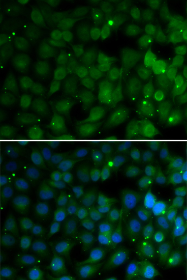 Immunofluorescence analysis of U20S cell using HPD antibody. Blue: DAPI for nuclear staining.