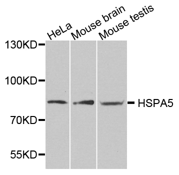 Secretory and transmembrane proteins are synthesized on polysomes and translocated into the endoplasmic reticulum (ER). Inside the ER, these proteins are often modified by disulfide bond formation, amino-linked glycosylation and folding. To help proteins fold properly, the ER contains a pool of molecular chaperones including HSPA5. HSPA5 was identified as an immunoglobulin heavy chain binding protein in pre-B cells (1,2). It was also found to be induced at the protein level by glucose starvation (3). When protein folding is disturbed inside ER, HSPA5 synthesis is increased. Subsequently, HSPA5 binds to misfolded proteins to prevent them from forming aggregates and assists in proper refolding (4).