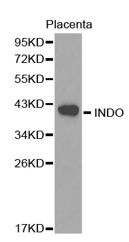 INDO/IDO1/indoleamine 2,3-dioxygenase (IDO) is an IFN-γ-inducible enzyme that catalyzes the rate-limiting step of tryptophan degradation (1). IDO is upregulated in many tumors and in dendritic cells in tumor-draining lymph nodes. Elevated tryptophan catabolism in these cells leads to tryptophan starvation of T cells, limiting T cell proliferation and activation (2). Therefore, IDO is considered an immunosuppresive molecule, and research studies have shown that upregulation of IDO is a mechanism of cancer immune evasion (3). The gastrointestinal stromal tumor drug, imatinib, was found to act, in part, by reducing IDO expression, resulting in increased CD8+ T cell activation and induction of apoptosis in regulatory T cells (4). In addition to its enzymatic activity, IDO was recently shown to have signaling capability through an immunoreceptor tyrosine-based inhibitory motif (ITIM) that is phosphorylated by Fyn in response to TGF-β. This leads to recruitment of SHP-1 and activatation of the noncanonical NF-κB pathway (5).