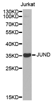 The protein encoded by this intronless gene is a member of the JUN family, and a functional component of the AP1 transcription factor complex. It has been proposed to protect cells from p53-dependent senescence and apoptosis. Alternate translation initiation site usage results in the production of different isoforms.