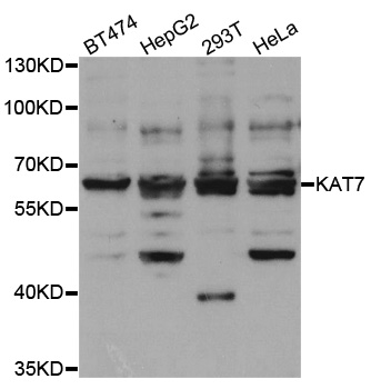 MYST2, also named as HBO1, HBOa MOZ, YBF2/SAS3, SAS2 and TIP60 protein 2, belongs to the MYST (SAS/MOZ) family. It specifically represses AR mediated transcription. MYST2 is a candidate oncogene. It enhances the anchorage-independent growth of breast cancer cells.(PMID:19372580) MYST2 is a histone acetyltransferase (HAT) which could exert oncogenic function in breast cancer. It is an important downstream molecule of ERa, and ERK1/2 signaling pathway may involved in the expression of HBO1 increased by E2.