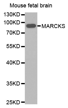 The expression of a major cellular substrate for protein kinase C, the MARCKS protein, is regulated in a cell-, tissue-, and developmental stage-specific fashion; in addition, this expression can be stimulated acutely by various cytokines in certain cell types (1). MARCKS) binds calmodulin and is a predominant, specific substrate of PKC which is phosphorylated during macrophage and neutrophil activation, growth factor-dependent mitogenesis and neurosecretion; it is redistributed from plasma membrane to cytoplasm when phosphorylated and is involved in leukocyte motility. It has been reported that MARCKS is a filamentous (F) actin crosslinking protein, with activity that is inhibited by PKC-mediated phosphorylation and by binding to calcium-calmodulin. MARCKS may be a regulated crossbridge between actin and the plasma membrane, and modulation of the actin crosslinking activity of the MARCKS protein by calmodulin and phosphorylation represents a potential convergence of the calcium-calmodulin and PKC signal transduction pathways in the regulation of the actin cytoskeleton (2).