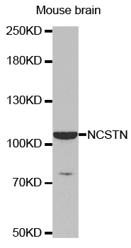 This gene encodes a Type I transmembrane glycoprotein that is an integral component of the multimeric gamma-secretase complex. The encoded protein cleaves integral membrane proteins, including Notch receptors and beta-amyloid precursor protein, and may be a stabilizing cofactor required for gamma-secretase complex assembly. The cleavage of beta-amyloid precursor protein yields amyloid beta peptide, the main component of the neuritic plaque and the hallmark lesion in the brains of patients with Alzheimer's disease; however, the nature of the encoded protein's role in Alzheimer's disease is not known for certain. Alternatively spliced transcript variants have been described, but their full-length nature has not been determined.