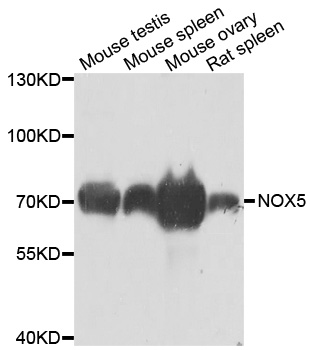This gene is predominantly expressed in the testis and lymphocyte-rich areas of spleen and lymph nodes. It encodes a calcium-dependen NADPH oxidase that generates superoxide, and functions as a calcium-dependent proton channel that may regulate redox-dependent processes in lymphocytes and spermatozoa. Alternatively spliced transcript variants encoding different isoforms have been described for this gene.