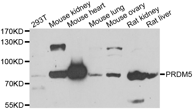 Western blot analysis of extracts of various cell lines, using PRDM5 antibody.