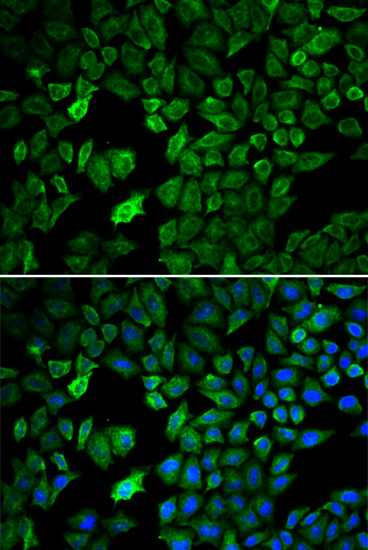 Immunofluorescence analysis of A549 cell using PRMT5 antibody. Blue: DAPI for nuclear staining.