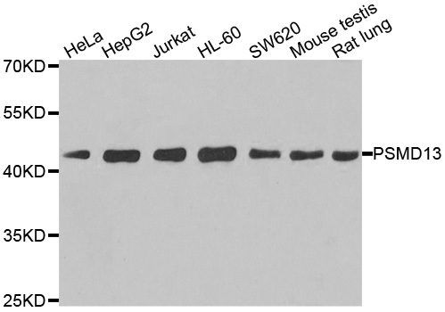 Western blot analysis of extracts of various cell lines, using PSMD13 antibody.