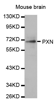PXN (paxillin) is a 68 kDa scaffold protein that interacts with multiple structural and signaling proteins and regulates cell adhesion, migration, proliferation, and apoptosis. PXN is thought to play an important role in tumor migration, invasion, and metastasis (21045234). PXN has been identified as a direct substrate of protein tyrosine phosphatase receptor-type T (PTPRT), a potent tumor suppressor gene. Increased phospho-PXN at tyrosine residue 88 (Y88) has been found as a common feature of human colon cancers (20133777).
