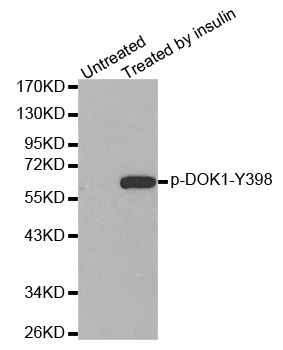 | Immunogen | A phospho specific peptide corresponding to residues surrounding Y398 of human DOK1 |