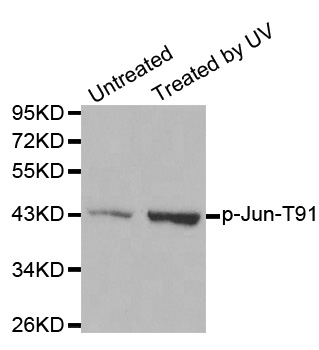 | Immunogen | A phospho specific peptide corresponding to residues surrounding T91 of human Jun |
