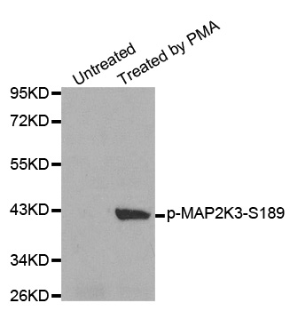 | Immunogen | A phospho specific peptide corresponding to residues surrounding S189 of human MAP2K3 |