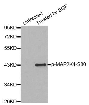 | Immunogen | A phospho specific peptide corresponding to residues surrounding S80 of human MAP2K4 |