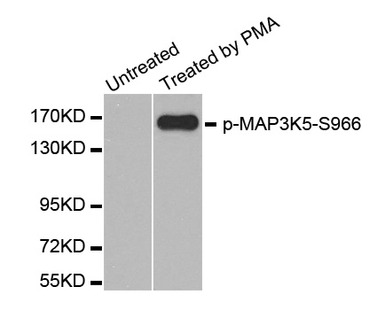 | Immunogen | A phospho specific peptide corresponding to residues surrounding S966 of human MAP3K5 |
