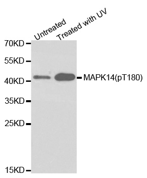 | Immunogen | A phospho specific peptide corresponding to residues surrounding T180 of human MAPK14 |