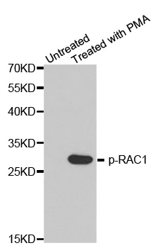 | Immunogen | A phospho specific peptide corresponding to residues surrounding S71 of human RAC1 |