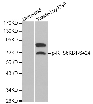 | Immunogen | A phospho specific peptide corresponding to residues surrounding S424 of human RPS6KB1 |