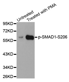| Immunogen | A phospho specific peptide corresponding to residues surrounding S206 of human SMAD1 |