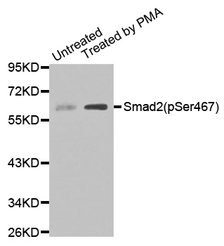| Immunogen | A phospho specific peptide corresponding to residues surrounding S467 of human SMAD2 |