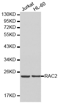 Western blot analysis of extracts of H560 cells, using RAC2 antibody.