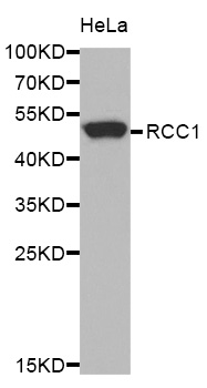 CHC1, also named as RCC1, promotes the exchange of ran-bound gdp by gtp. It is involved in the regulation of onset of chromosome condensation in the S-phase. Phosphorylation of RCC1 on serines located in or near its nuclear localization signal activates RCC1 to generate RanGTP on mitotic chromosomes, which is required for spindle assembly and chromosome segregation. This antibody is a rabbit polyclonal antibody raised against residues near the C terminus of human RCC1.