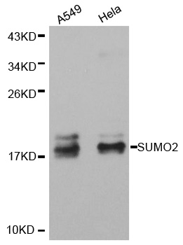 Western blot analysis of extracts of various cell lines, using SUMO2 antibody.