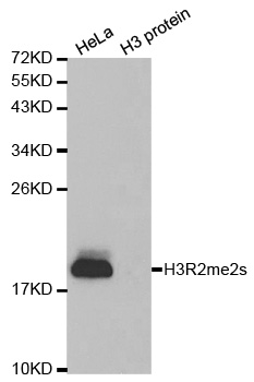| Immunogen | A synthetic methylated peptide corresponding to residues surrounding R2 of human histone H3 |