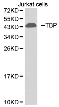 The TATA binding protein (TBP) is a transcription factor that binds specifically to a DNA sequence TATA box. This DNA sequence is found about 25-30 base pairs upstream of the transcription start site in some eukaryotic gene promoters. TBP, along with a variety of TBP-associated factors, make up the TFIID, a general transcription factor that in turn makes up part of the RNA polymerase II preinitiation complex. As one of the few proteins in the preinitation complex that binds DNA in a sequence-specific manner, it helps position RNA polymerase II over the transcription start site of the gene. However, it is estimated that only 10-20% of human promoters have TATA boxes. Therefore, TBP is probably not the only protein involved in positioning RNA polymerase II. This protein is not suitable for samples where the nuclear envelope has been removed.