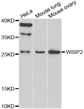 This gene encodes a member of the WNT1 inducible signaling pathway (WISP) protein subfamily, which belongs to the connective tissue growth factor (CTGF) family. WNT1 is a member of a family of cysteine-rich, glycosylated signaling proteins that mediate diverse developmental processes. The CTGF family members are characterized by four conserved cysteine-rich domains: insulin-like growth factor-binding domain, von Willebrand factor type C module, thrombospondin domain and C-terminal cystine knot-like (CT) domain. The encoded protein lacks the CT domain which is implicated in dimerization and heparin binding. It is 72% identical to the mouse protein at the amino acid level. This gene may be downstream in the WNT1 signaling pathway that is relevant to malignant transformation. Its expression in colon tumors is reduced while the other two WISP members are overexpressed in colon tumors. It is expressed at high levels in bone tissue, and may play an important role in modulating bone turnover.