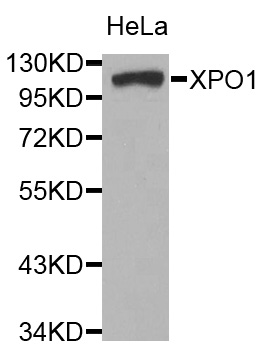The protein encoded by this gene mediates leucine-rich nuclear export signal (NES)-dependent protein transport. Exportin 1 specifically inhibits the nuclear export of Rev and U snRNAs. It is involved in the control of several cellular processes by controlling the localization of cyclin B, MPAK, and MAPKAP kinase 2. This protein also regulates NFAT and AP-1.