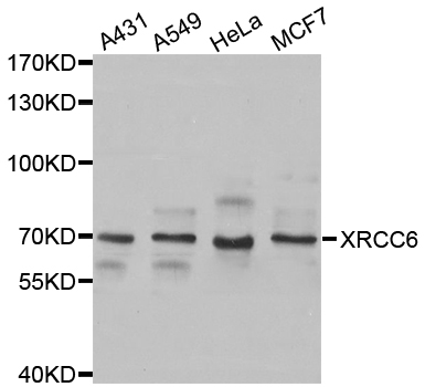 X-ray repair cross-complementing protein 6(XRCC6)gene encodes subunit p70 of the p70/p80 autoantigen which has a role in DNA repair or transposition. DNA helicase II complex binds preferentially to fork-like ends of double-standed DNA in a cell cycle-dependent manner, which may be mediated by XRCC6. XRCC6/5 can form a heterdimer, which function as a regulatory subunit of the DNA-dependent protein kinase complex DNA-PK by increasing the affinity of the catalytic subunit PRKDC to DNA, and also it can stablize broken DNA ends and bringing them together. Otherwise, XRCC5/6 heterdimer together with APEX1 can negatively regulate of transcription