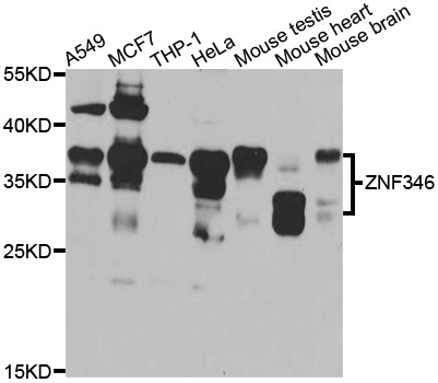 Western blot analysis of extracts of various cell lines, using ZNF346 antibody.